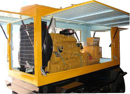 平川柴油发电机组/移动柴油发电机组设计独具创新,机动性高、重心低、制动安全、制造精良、外形美观。 平川拖车车架采用槽梁焊接成框架结构,节点选择合理、强度高、刚性好;同时装有钢板弹簧悬架结构;拖车采用高度可调节插销式牵引架,适用于各种高度牵引车;采用圆形钢管焊接直通式车轴,结构紧凑,安全可靠;车架四角设有机械式支撑装置,配备惯性行车制动、驻车制动和脱离应急制动,确保机组在各种状况下的安全;车架前端设有支撑轮,具备承受机组垂直载荷的功能的同时还具备导向功能;整车配备转向和刹车指示灯,同时装有尾灯标准插头
